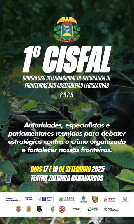 A Assembleia Legislativa de Mato Grosso (ALMT) realiza, nos dias 17 e 18 de setembro, o 1º Congresso Internacional de Segurança de Fronteiras das Assembleias