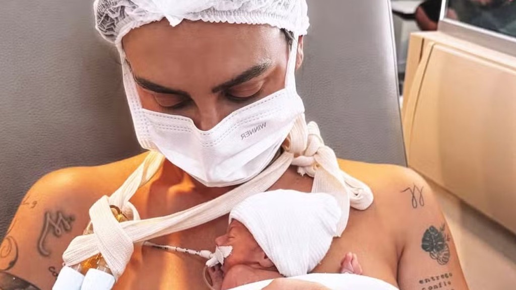 Neste domingo (29), Clara Maia segurou o filho Theo no colo pela primeira vez após o parto prematuro dos gêmeos. Um dos bebês, Túlio, acabou falecendo e o irmão Theo segue em recuperação hospitalar.