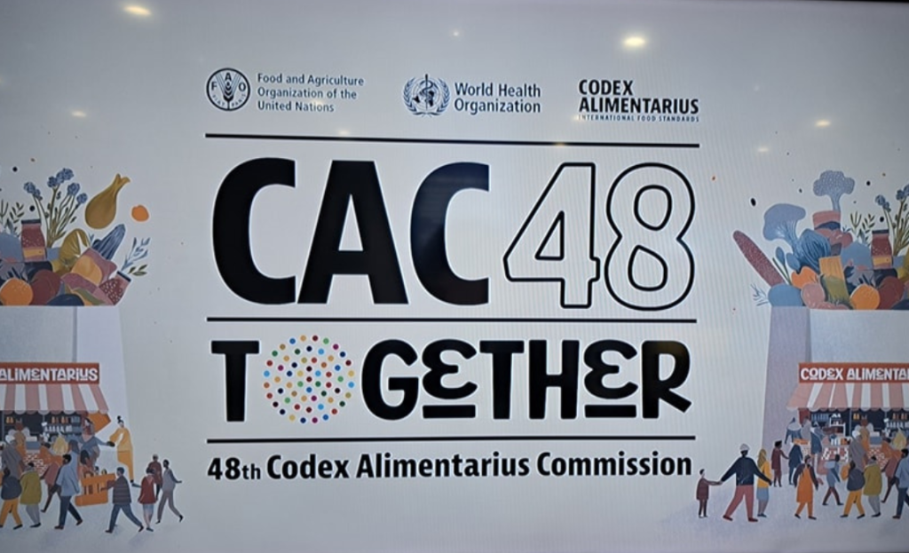 O Ministério da Agricultura e Pecuária (Mapa) participou, de 10 a 14 de novembro, em Roma, da 48ª Sessão da Comissão do Codex Alimentarius (CAC48), encerrada com decisões relevantes para o comércio internacional de alimentos e para o fortalecimento da segurança alimentar. A delegação brasileira foi liderada pelo ex-presidente do Codex, Guilherme Antonio da Costa Júnior, e contou ainda com a participação de Cesar Augusto Vandesteen Júnior e da adida agrícola na Representação do Brasil junto à FAO, Fernanda Vanessa Mascarenhas Magalhães, todos servidores da Secretaria de Comércio e Relações Internacionais do Mapa.