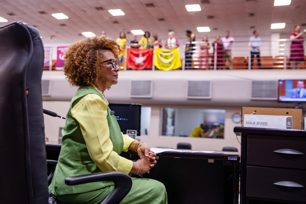 “Chego de cabeça erguida, como uma boa cuiabana que sou, como uma mulher negra que vive nesta terra já há muitas gerações. Chego para fazer uma reflexão importante nesse momento em que dados sobre o feminicídio são alarmantes e que colocam o estado de Mato Grosso a frente dos outros estados”, disse Edna Sampaio.
