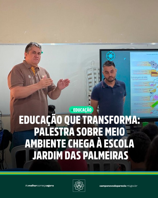 A Prefeitura de Campo Novo do Parecis, por meio da Secretaria de Desenvolvimento Econômico em parceria com a Secretaria de Educação, realizou uma palestra educativa sobre meio ambiente na Escola Jardim das Palmeiras.