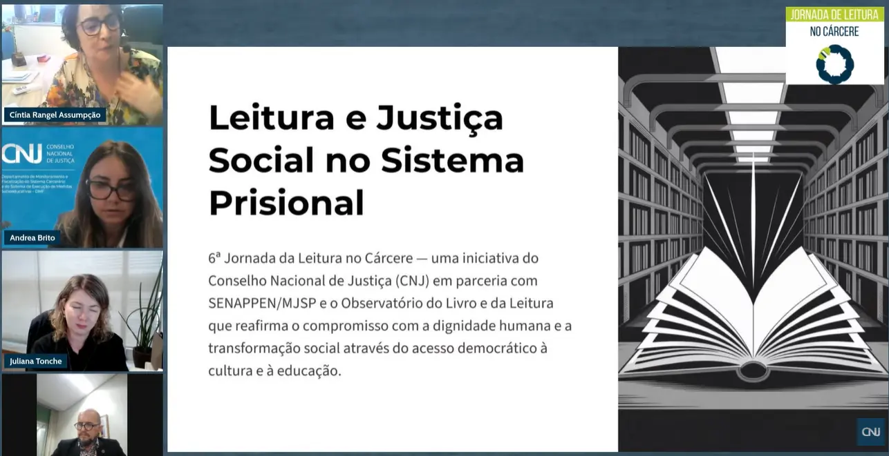 “Essa parceria com o CNJ, com os desafios do Pena Justa, é um elemento de materialização de anseios, de perspectivas de transformação. Apesar dos avanços, ainda enfrentamos obstáculos estruturais que exigem mobilização conjunta para garantir que a leitura seja, de fato, um direito universal no sistema prisional”, afirmou. O painel contou ainda com a participação de Jeferson Assumção, da Diretoria de Livro, Literatura e Bibliotecas do Ministério da Cultura, e foi apresentado por Juliana Tonche, do Departamento de Monitoramento e Fiscalização do Sistema Carcerário do CNJ.