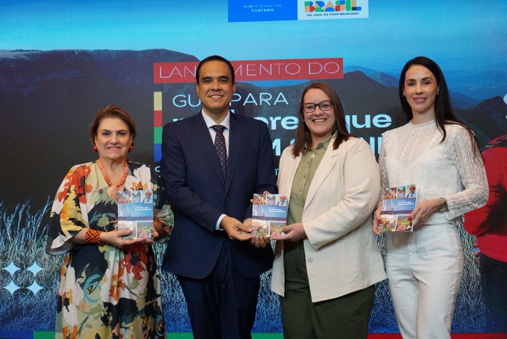 Nesta quinta-feira (5), foi lançado o Guia para Mulheres que Viajam Sozinhas, publicação inédita do Ministério do Turismo que reúne dados, análises e orientações práticas para incentivar um turismo mais seguro, responsável e inclusivo para as mulheres no Brasil. O evento contou com a presença da ministra das Mulheres, Márcia Lopes; e do ministro do Turismo, Gustavo Feliciano, entre outras autoridades.