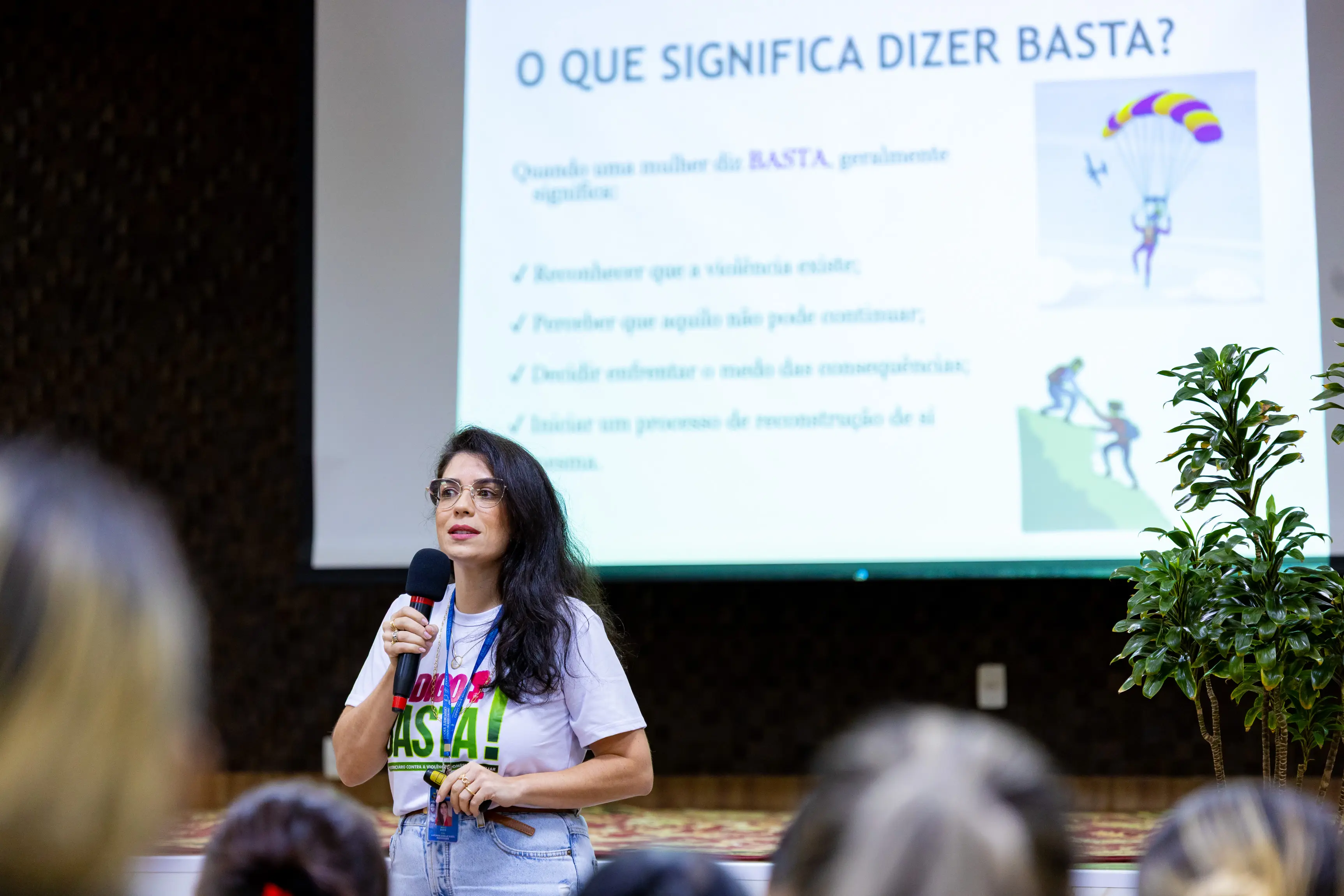 Na sequência, a juíza titular da 2ª Vara Especializada de Violência Doméstica e Familiar Contra a Mulher de Cuiabá, Tatyana Lopes de Araújo Borges, abordou os tipos de violência doméstica e a importância das medidas protetivas. “Hoje nós falamos sobre os cinco tipos de violência: física, psicológica, moral, sexual e patrimonial. É muito importante que as mulheres conheçam seus direitos para romper com o ciclo da violência o quanto antes. As medidas protetivas salvam vidas. Só em Mato Grosso, no ano passado, foram 21.346 medidas protetivas e 5.500 disponibilizações do botão do pânico”.