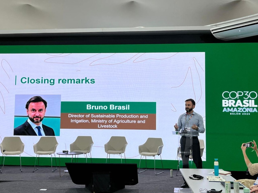 A agricultura regenerativa e a recuperação produtiva de áreas degradadas ganharam destaque na Agenda de Ação da COP30, em painel oficial realizado nesta sexta-feira (15), na Blue Zone, em Belém (PA). O Ministério da Agricultura e Pecuária (Mapa) foi representado por Bruno Brasil, diretor do Departamento de Produção Sustentável, convidado para fazer os closing remarks do encontro, que reuniu representantes do setor público e privado, instituições financeiras e organizações internacionais dedicadas à transição agroambiental global.