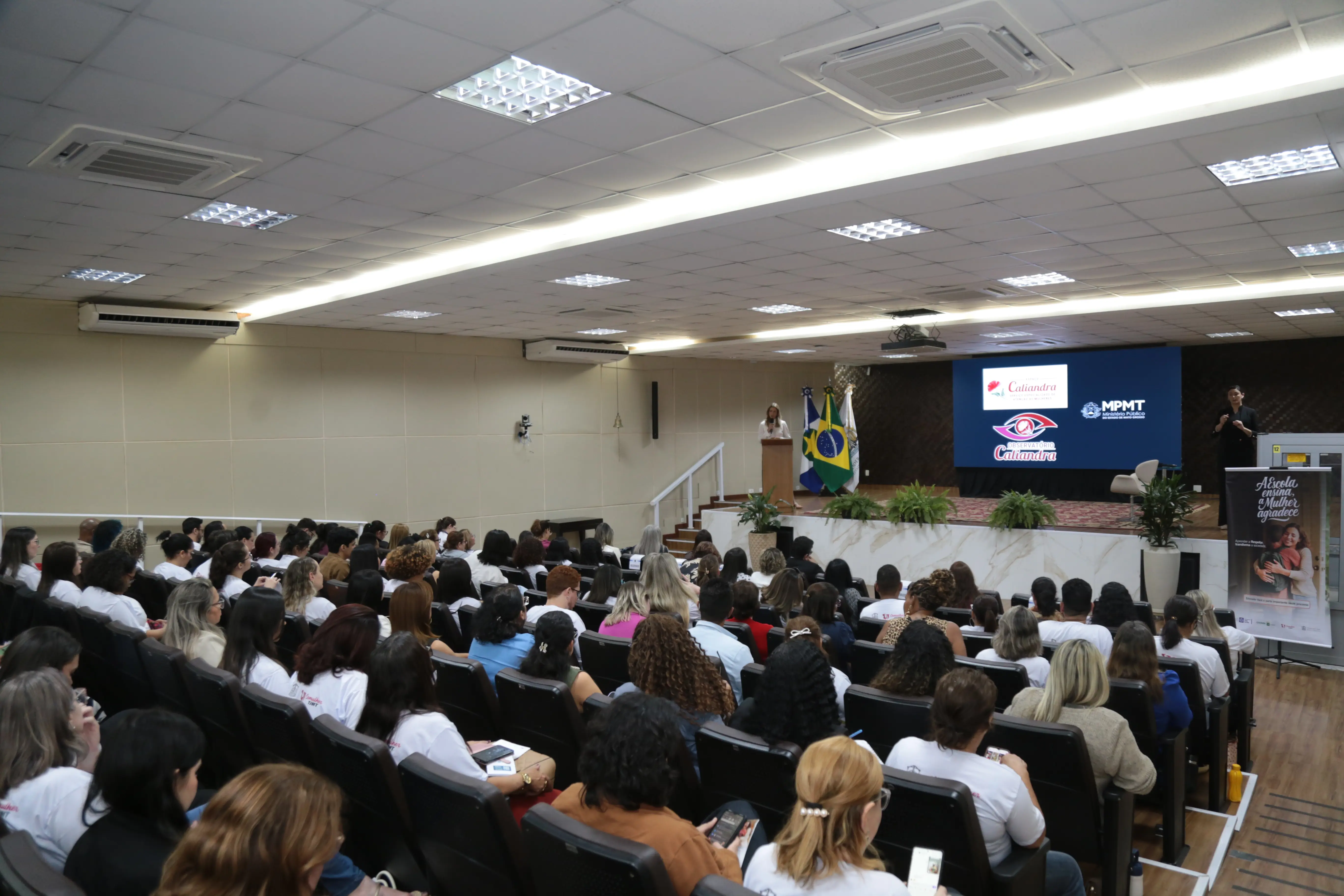 Durante a palestra, Claire Dutra apresentou dados do Observatório Caliandra, do Ministério Público de Mato Grosso. De janeiro a 14 de agosto, o estado registrou 10.946 medidas protetivas, e em 2024 foram 17.910.