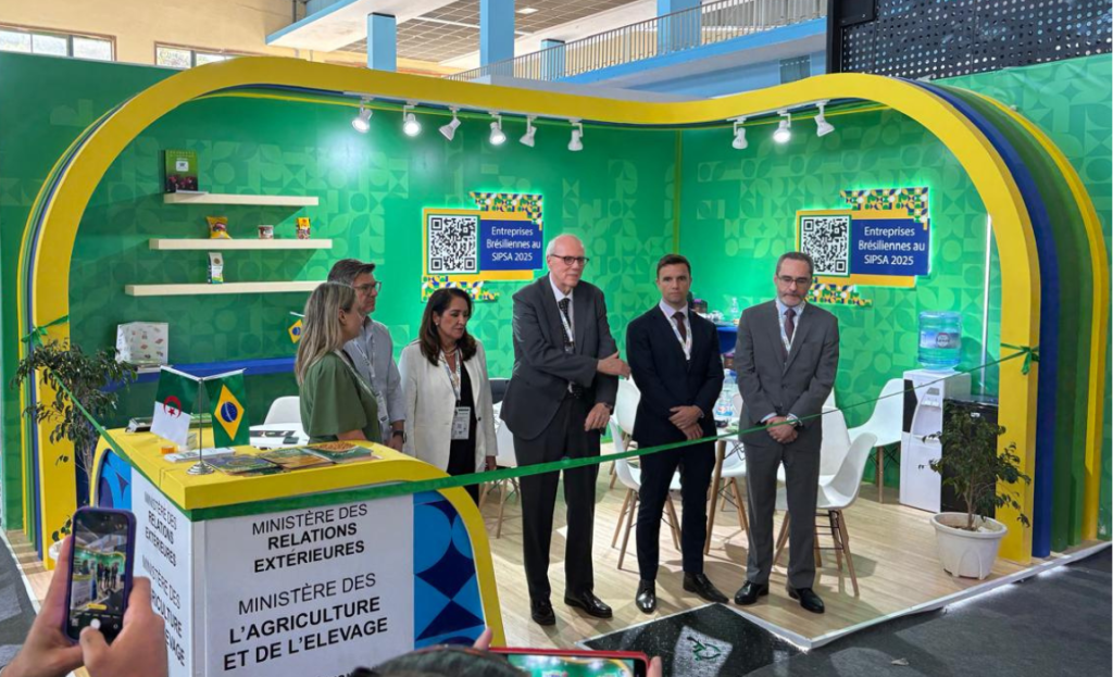 Durante a visita ao pavilhão brasileiro, o ministro argelino da Agricultura, Desenvolvimento Rural e Pesca, Youcef Cherfa, destacou a importância do Brasil como parceiro estratégico e reforçou o interesse em intensificar a cooperação no setor.