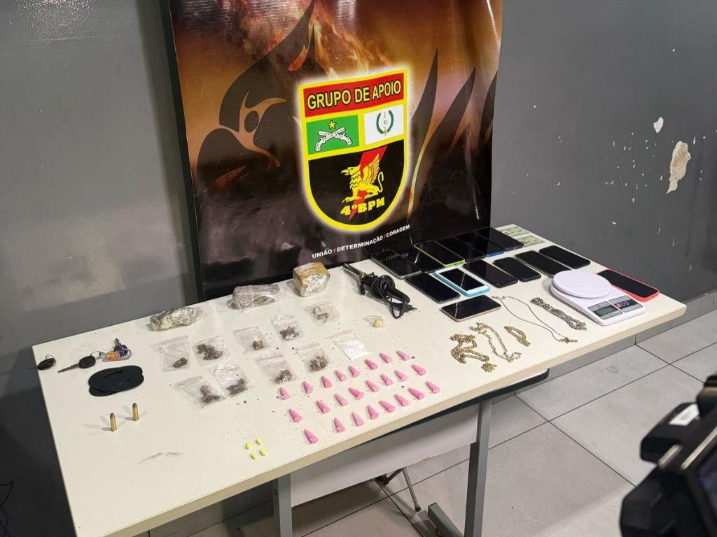 Policiais militares do Grupo de Apoio (GAP) do 4º Batalhão prenderam quatro homens e uma mulher pelos crimes de roubo e tráfico de drogas, na noite desta quinta-feira (31.7), em Várzea Grande. Todos os suspeitos foram identificados como membros de uma facção criminosa. Com eles, a PM apreendeu porções de maconha e cocaína e comprimidos de ecstasy.