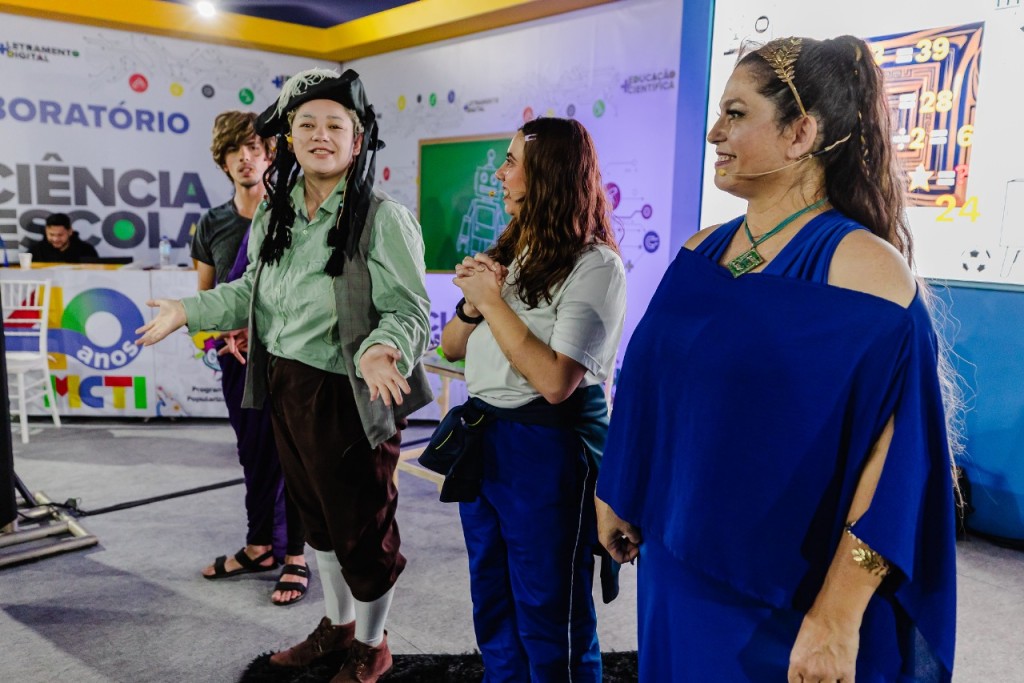 De um canto, a atriz-divulgadora científica Tainara Cristina Basaglia, de 33 anos, do coletivo Neperfekta, convida adolescentes a “desvendar o grande cálculo” numa peça teatral que mistura Hipátia, Pitágoras, Gauss e conexões com referências pop e atuais. De outro, monitores do Instituto Brasileiro de Informação em Ciência e Tecnologia (IBICT), unidade vinculada ao Ministério da Ciência, Tecnologia e Inovação (MCTI), gerem uma sala de escape (escape room) — uma espécie de jogo interativo em que os participantes precisam resolver enigmas para conseguir sair de lá — com temas ligados à cultura oceânica, como manguezais, El Niño e mudanças climáticas.