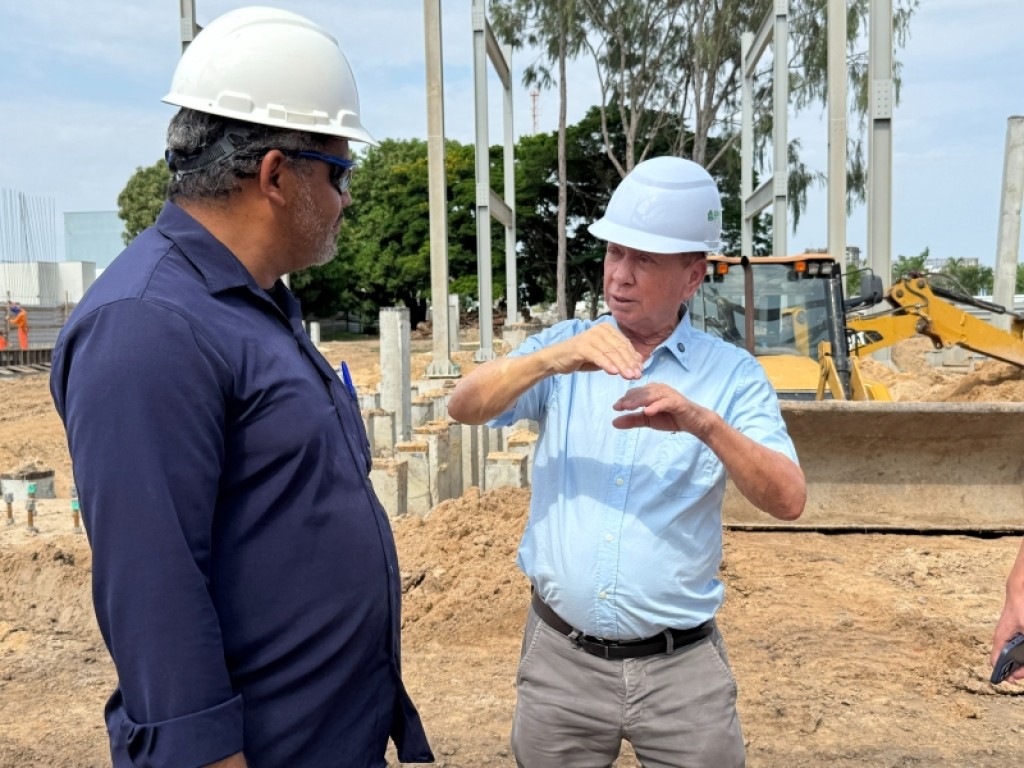 O prefeito Roberto Dorner segue com os trabalhos de vistoria nas obras em andamento na cidade. Desta vez a visita foi à sede da nova Prefeitura, cuja obra atinge 15,81% do contrato. Por lá, está sendo feita a escavação e concretagem de blocos de fundações onde ficam localizados os elevadores e, também, já a montagem de estrutura metálica de dois pavimentos.