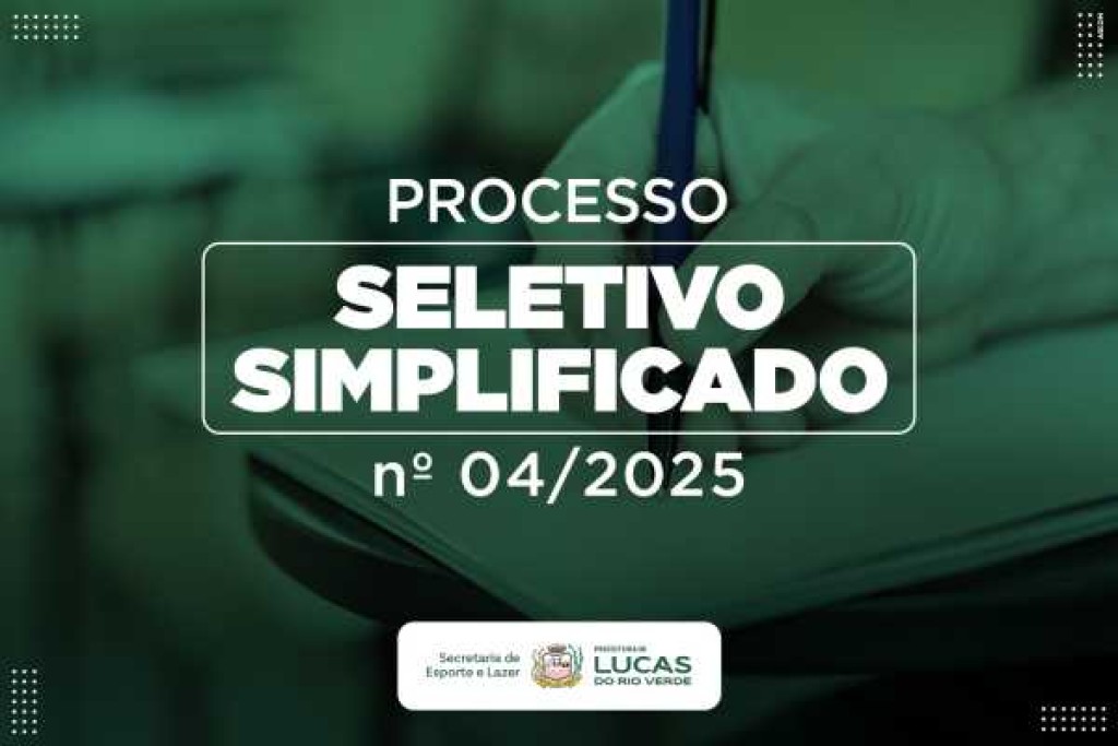A Prefeitura de Lucas do Rio Verde informa que, a partir desta terça-feira (21), estarão abertas as inscrições para o Processo Seletivo Simplificado – Edital 04/2025, que trata sobre seleção para contratação temporária e formação de cadastro reserva para atuação na Secretaria de Esporte e Lazer.