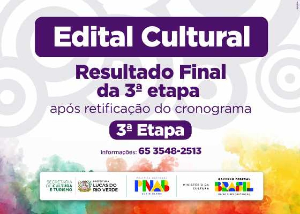 A Prefeitura de Lucas do Rio Verde, por meio da Secretaria de Cultura e Turismo, divulgou nesta quarta-feira (23) o resultado final dos projetos contemplados no Edital Cultural nº 10/2024 – Bolsas Culturais.