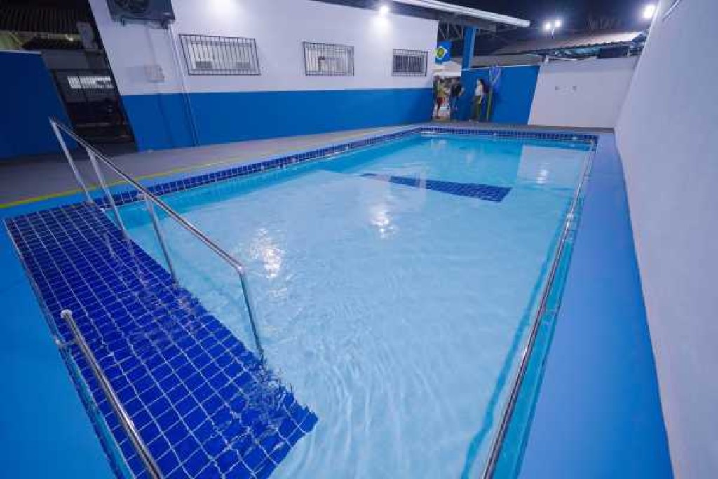 Essa é a primeira piscina adaptada para o atendimento de alunos PCDs do Projeto Nós Podemos Nadar. Com 50 m², a instalação conta com dois níveis de profundidade. O primeiro de 80 centímetros e o segundo de 1,40 metro. Por isso, sua estrutura conta com duas rampas, uma de acesso e outra que possibilita a transição para a área mais funda. Também foram instaladas barras laterais, corrimão e um sistema de aquecimento elétrico, que mantém a temperatura estável.