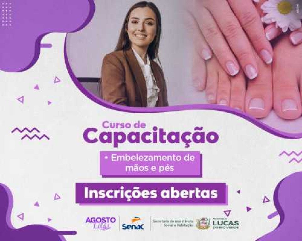A Prefeitura de Lucas do Rio Verde, por meio da Secretaria de Assistência Social e Habitação, em parceria com o Serviço Nacional de Aprendizagem Comercial (Senac-MT), abriu inscrições para o curso gratuito de Embelezamento de Mãos e Pés, oferecido dentro do programa Senac + Oportunidades.