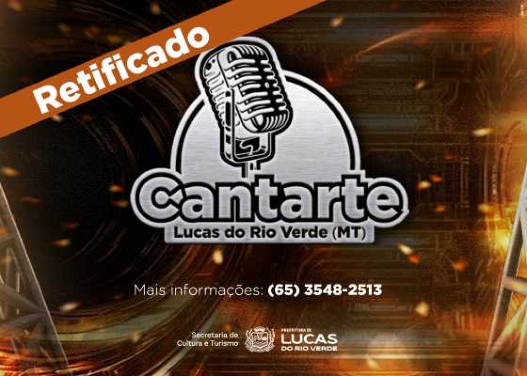 A Prefeitura de Lucas do Rio Verde, por meio da Secretaria de Cultura e Turismo, publicou, nesta quinta-feira (07), a Retificação do Resultado dos Candidatos Classificados para a Final do Cantarte – 4ª Edição.