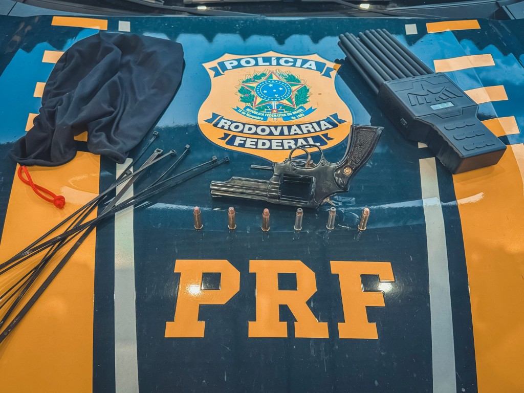 A Polícia Rodoviária Federal (PRF) nesta terça-feira (18), prendeu suspeitos com arma de fogo e um Jammer (equipamento para bloquear sinais) em Rondonópolis-MT. A ação ocorreu no km 215 da BR-364.