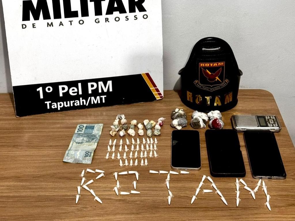 Policiais militares do Batalhão de Rondas Ostensivas Tático Móvel (Rotam) apreenderam três adolescentes faccionados por tráfico ilícito de drogas, na noite desta quarta-feira (8.10), no município de Tapurah. Com os menores, foram apreendidas mais de 100 porções de cocaína, pasta base de cocaína e maconha.