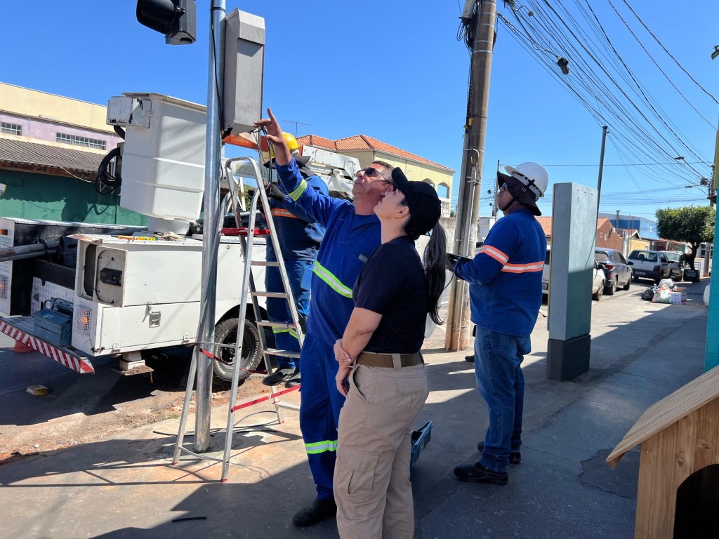 A secretária conferiu in loco o funcionamento do semáforo ainda nas primeiras horas após a instalação, conversou com a equipe e observou a conduta de quem passava pelo trajeto.