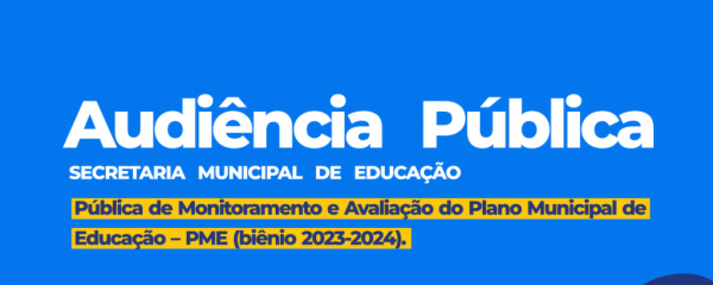 A Secretaria Municipal de Educação de Sorriso, em parceria com o Fórum Municipal de Educação, realizará, nesta quinta-feira (19), a Audiência Pública de Monitoramento e Avaliação do Plano Municipal de Educação (PME), referente ao biênio 2023-2024.