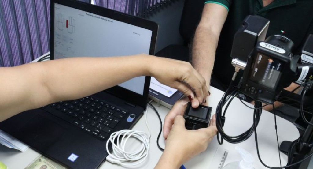 #DescriçãodaImagem: A imagem mostra uma pessoa fazendo o seu cadastro biométrico.