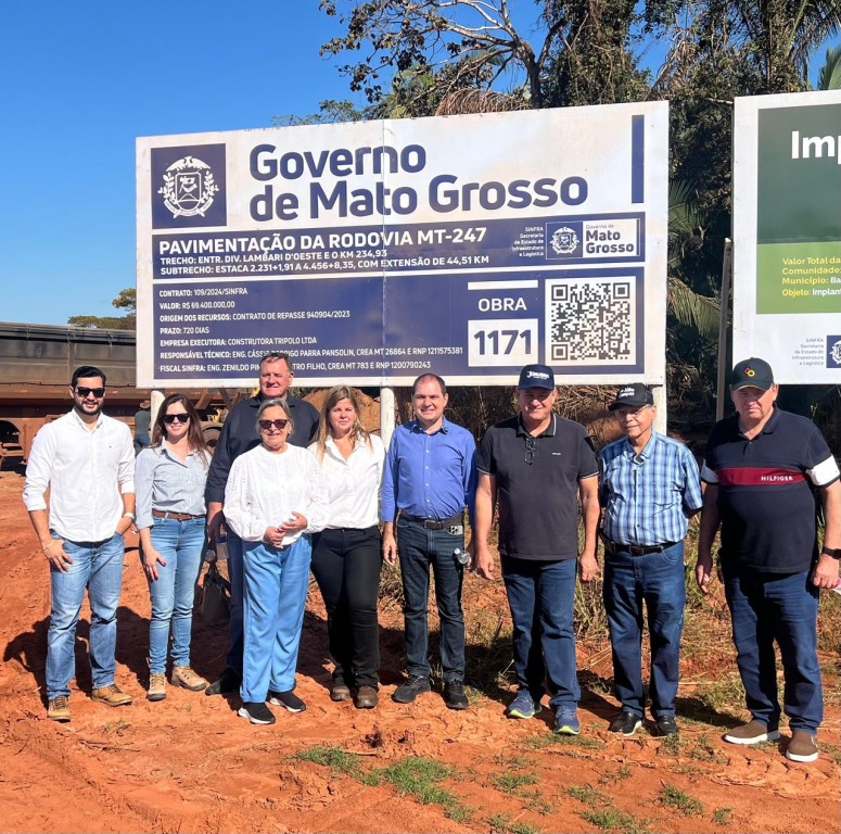 A comitiva foi acompanhada pela secretária adjunta de Obras Rodoviárias da Secretaria de Estado de Infraestrutura e Logística (Sinfra), Nívia Calzolari, além de representantes das associações da MT-247 e MT-339. Também estiveram presentes os prefeitos de Rio Branco, Pabollo Victor; de Salto do Céu, Professor Mauto; prefeito de Tangará da Serra, Vander Masson; de Lambari D’Oeste, Marcelo Vitorazzi; de Cuverlândia, Jadilson Alves; e a prefeita de Barra do Bugres, Azenilda Pereira e seu vice Arthurzão, além de vereadores da região.