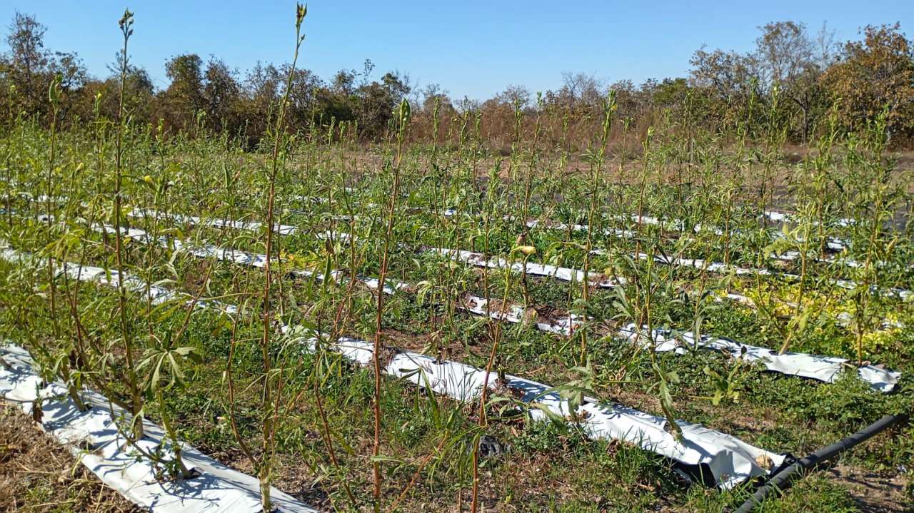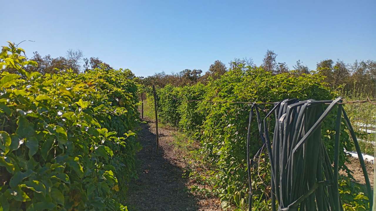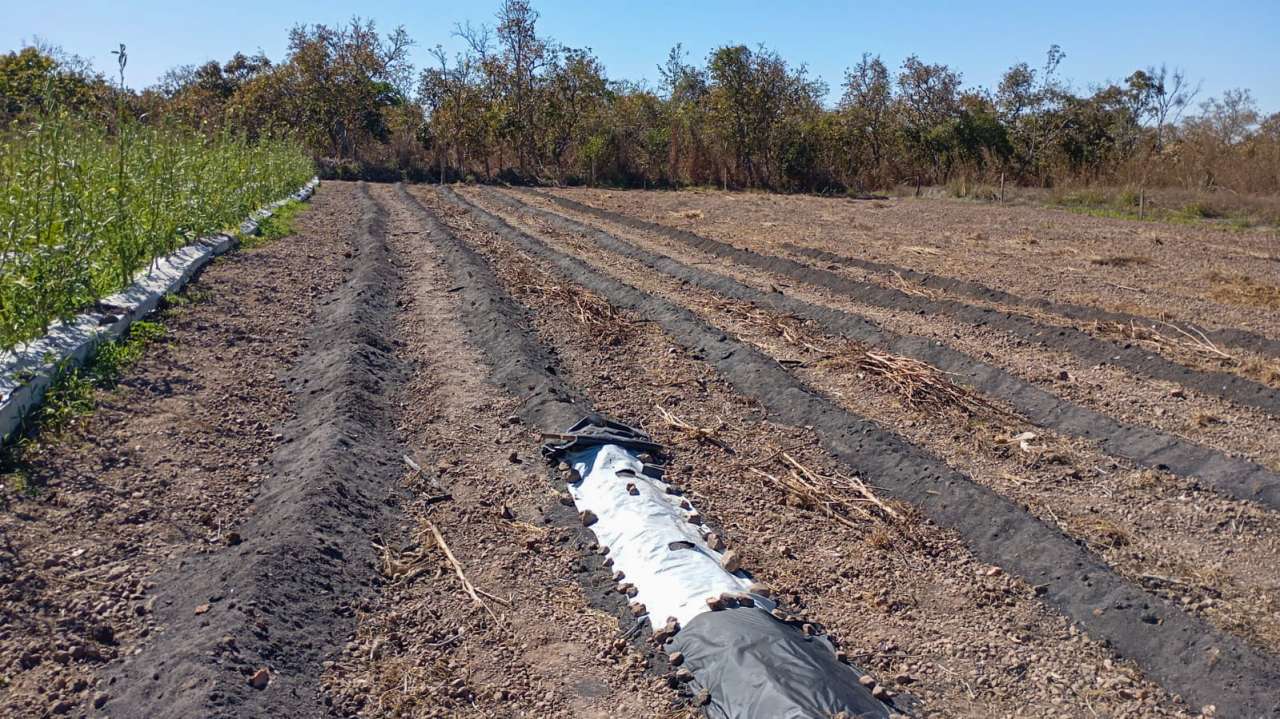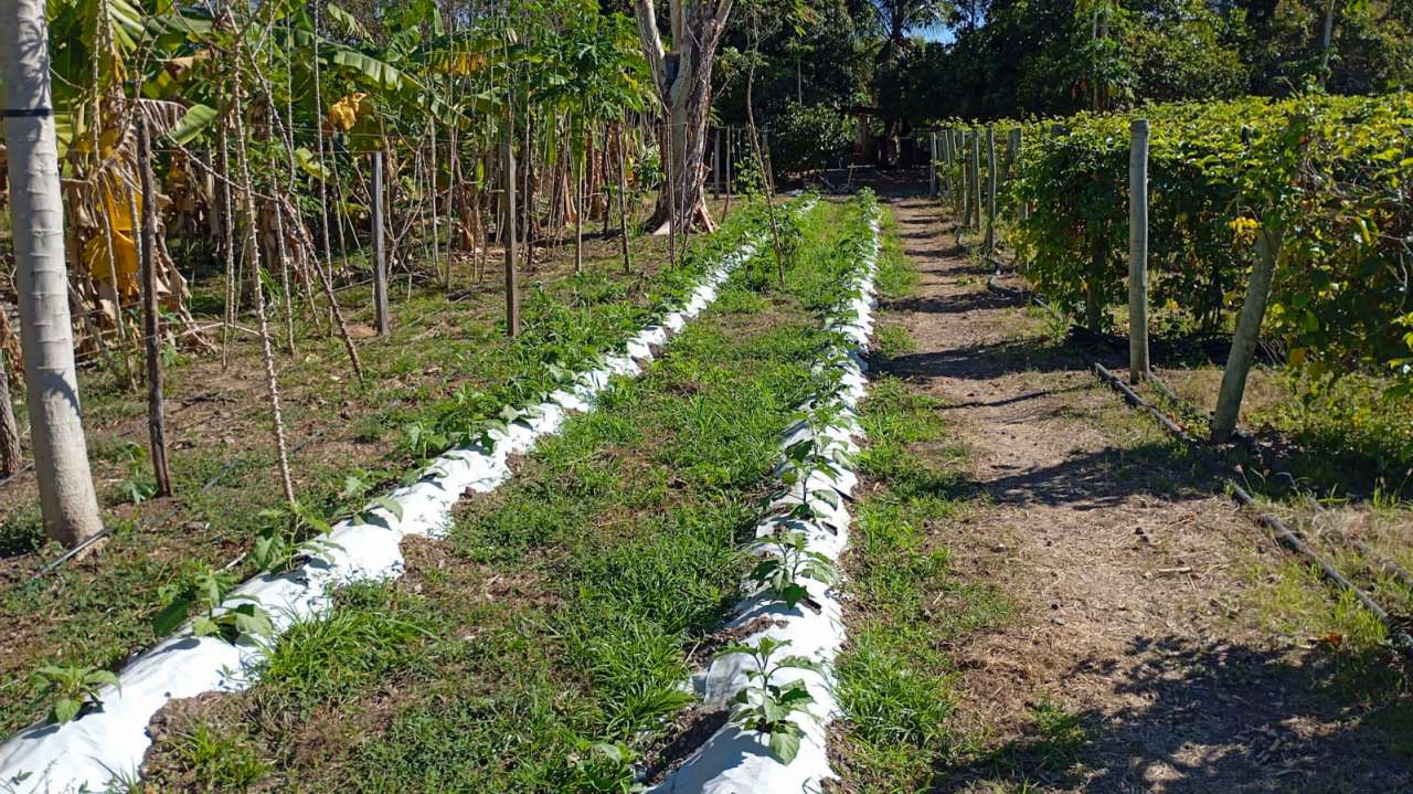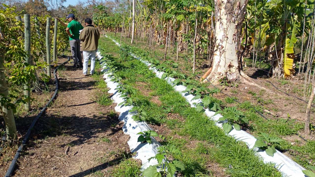 Entre os produtores visitados está Gabriel João Leonel do Sadia I, participante do projeto Quintais Produtivos, que cultiva rúcula, cebolinha, coentro, mamão, tomate e mantém uma granja com ovos caipiras. Também recebeu a equipe o agricultor Valdeon, também do Sadia I, que se destaca pelo cultivo de mandioca com irrigação por gotejamento, parreiral de maracujá, abobrinha e jiló no sistema mulching — técnica que cobre o solo com filme plástico para conservar a umidade, controlar plantas invasoras e proteger os frutos. Além disso, cultiva banana terra anã e utiliza como substrato a cinza da palha de arroz, recurso natural que melhora a fertilidade do solo e a produtividade.
